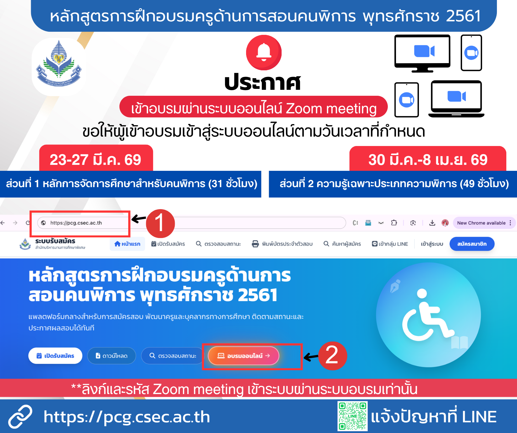ขอให้ผู้เข้าอบรมเข้าสู่ระบบออนไลน์ตามวันเวลาที่กำหนด